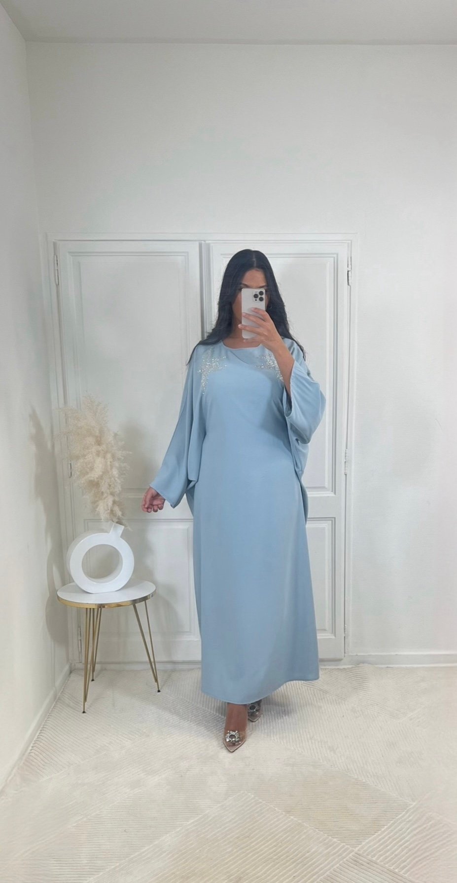Cette abaya apporte une touche moderne et sophistiquée grâce à ses détails soignés. Sa coupe fluide et ses manches longues vous permettront de vous sentir à l’aise et élégante pour toutes les occasions.