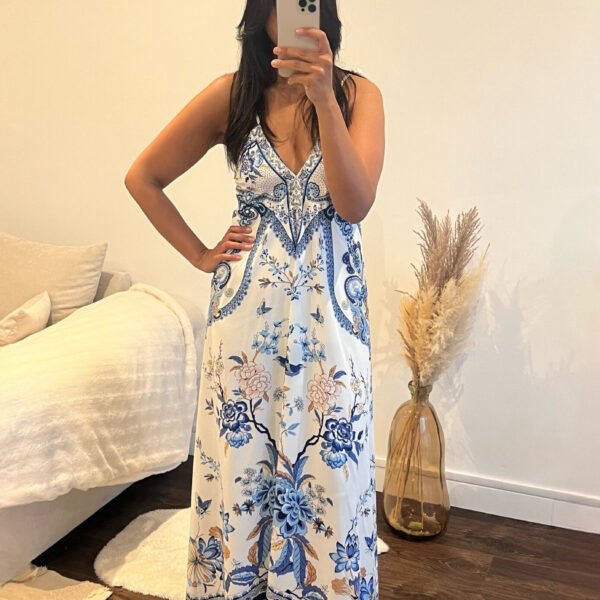 Cette sublime robe fleurie dos nu est parfaite pour les chaleurs estivales. Le dos nu mettra parfaitement en valeur votre silhouette. Cette robe allie confort et sophistication. Taille unique. Le mannequin mesure 1m68. Composition : 98% polyester – 2% elasthanne